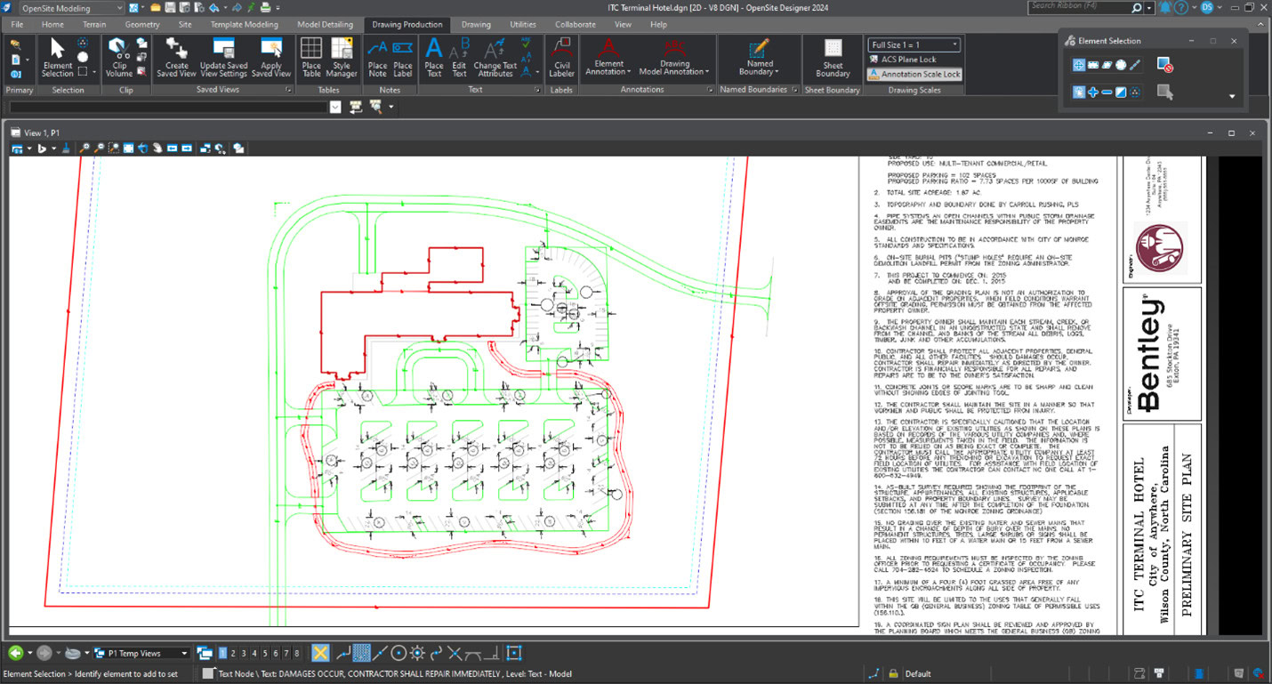 BentleyのOpenSite+ソフトウェアは、AIを使用して、土木用地設計の注釈と計画作成を自動化します。 (画像提供:Bentley Systems)